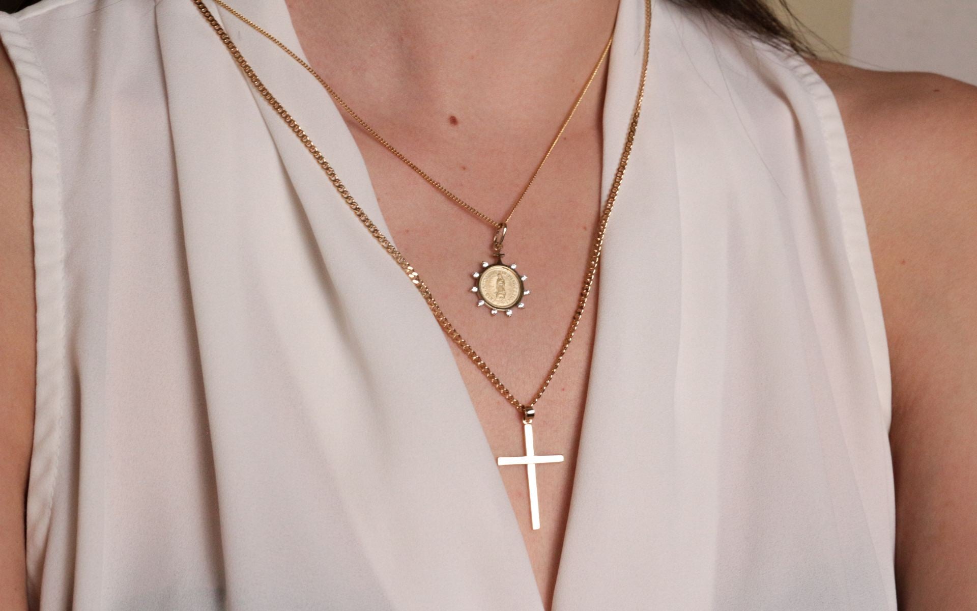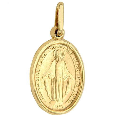 En la parte posterior lleva 12 estrellas que simbolizan los apóstoles rodeando los Sagrados Corazones de Jesús y de María.