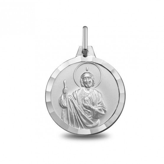 Patrono de las causas imposibles. Se le reconoce por portar en el pecho una medalla Con el rostro de Jesús, imagen que él le entrego para curar al rey de la ciudad de Edesa. Su garrote representa el recuerdo de su martirio, su manto verde por ser el Santo de la esperanza, el fuego de su cabeza representa el Espíritu Santo sobre él.